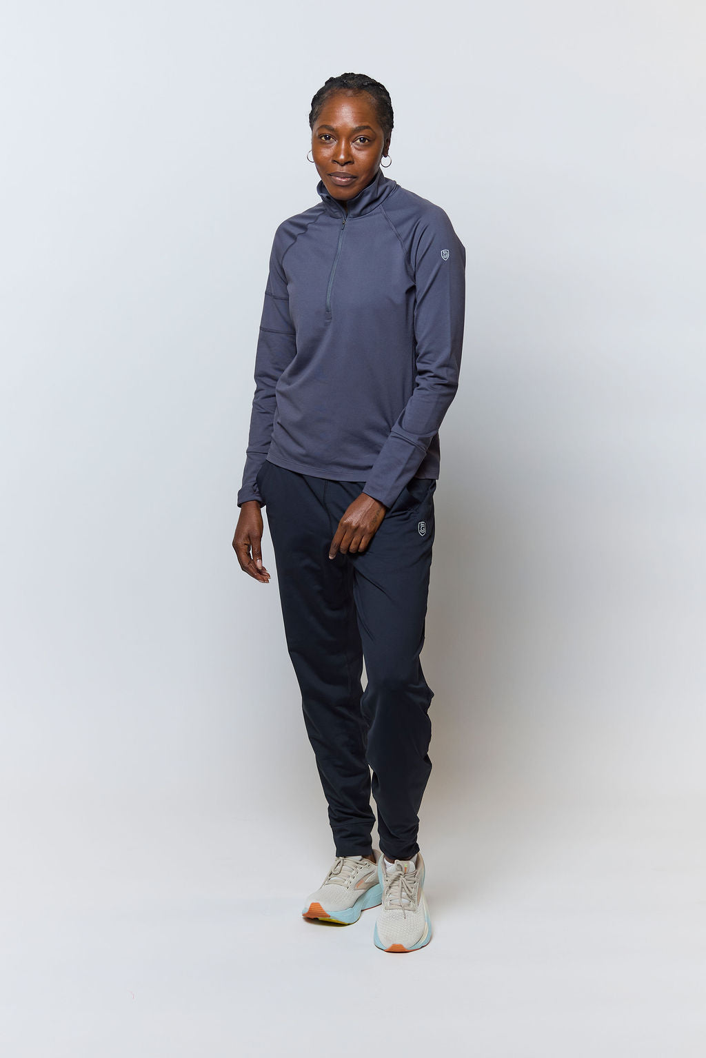The Valia delivers all-day comfort without sacrificing performance. The slim, athletic fit moves with you, the flatlock seams prevent chafing, and the pocket game is strong: two front hand pockets plus a zippered back pocket mean your essentials stay put.